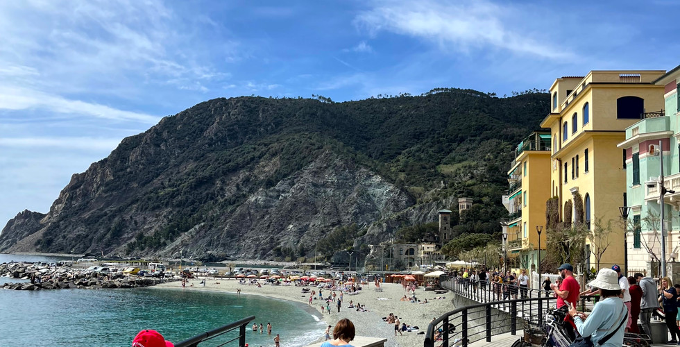 Next stop, Monterosso al Mare, 3 stops up the line, at the end of the Cinque Terre stretch of coastline. And what a beautiful village this is. The only village that has access by car, as well as train, it appears to be far more popular and has a lovely beach-side promenade with restaurant, hotel and souvenir shops. Heading south you eventually come to a tunnel that takes you through to the next section of beach, Monterosso al mare Beach, and a larger town area with roads, streets & lanes providing far more commercial opportunity. Mandy found one shop where she tells the owner that she'd like to take the whole shop home with her, fortunately the owner has no idea of English.
