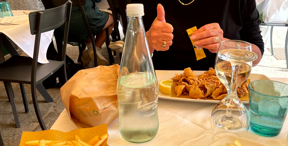 Back in a territory we partially knew, we made our way home then out, across the street to a small plaza (where we've come to know the owners of one of the small bar) for pre-dinner drinks, then around the corner for dinner of prosciutto and the sweetest melon (entrée) followed by mains of Spaghetti alle vongole (Mandy) & mussels (me), both delicious with a couple of take home treats, pistachio and chocolate canoli's. Then bed, dead tired and fulfilled!