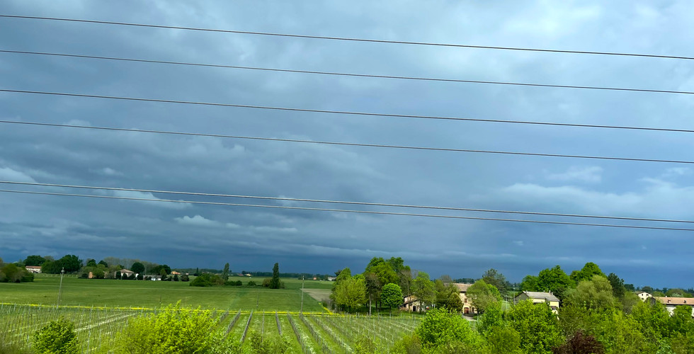 The second part of our journey, Milan to Bologna via Piacenza, Parma, & Modena will follow these plains, at 244kph. To the north, fields upon fields of crops while to the south (south-west) are the mountains we’d past through on the way from Genoa, the mountains that stretch down the west cost of Italy. The major stop appeared to be in the middle of nowhere, with a vast car park, recently planted trees and a spectacular station structure; Reggio Emilia Station. It's in the middle between Parma and Moderna, maybe a satellite station for the two larger cities. Either way, the structure is incredible and the hero of the stop. Steel beams are arranged to flow in and out toward and away from the train for the entire length of the platform, both side; it really is spectacular, in the middle of nowhere!