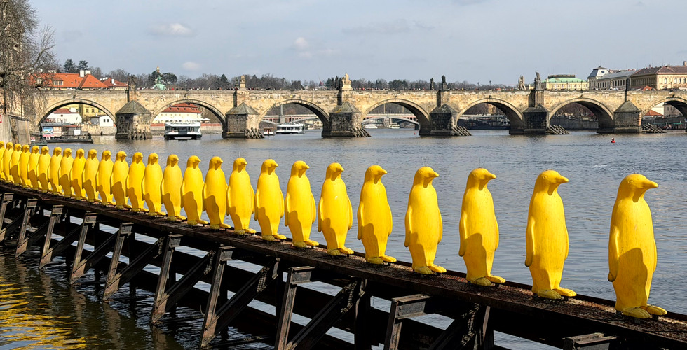 The Mlyny Restaurant was incredibly popular, even for mid-morning. The Penguins, that light up at night, aren't like Phillip Island but come complete with pigeon spikes, a great extension to the gallery works. Throughout Praha there are the odd art pieces every now & then, I love it!!